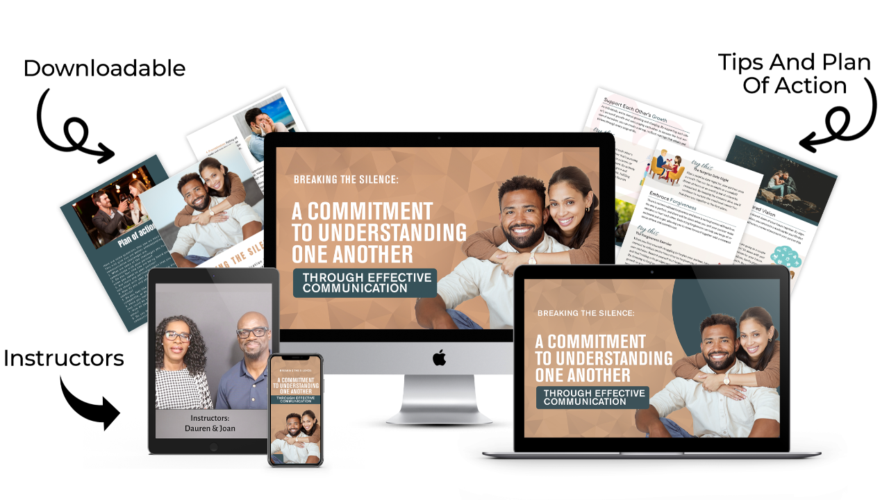 Breaking the Silence course change our marriage. We were stuck in a cycle of miscommunication and arguments that seemed impossible to break. This course taught us valuable techniques for active listening and expressing ourselves authentically. We learned how to navigate conflicts constructively, understanding each other's perspectives without judgment. The transformation in our communication has been remarkable, and it has brought us closer than ever before. This course is a game-changer for any couple seeking to improve their communication skills and create a stronger bond." - Michael and Lisa, married for 7 years.